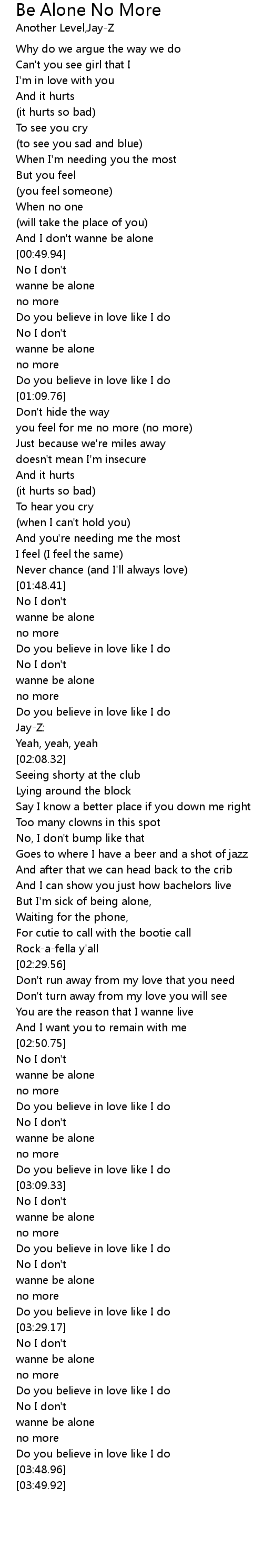 Be Alone No More Lyrics