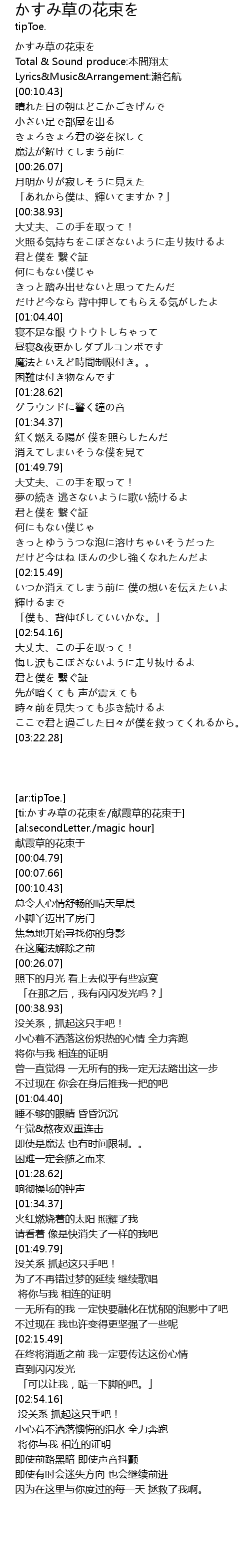 | [00:04.79] | Total & Sound produce:本間翔太 |