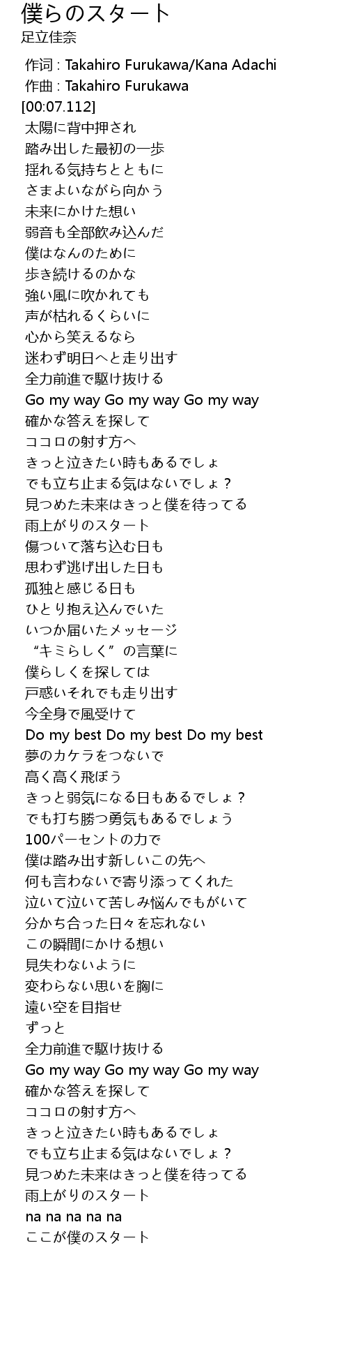 | [00:00.000] | 作词 : Takahiro Furukawa/Kana Adachi |