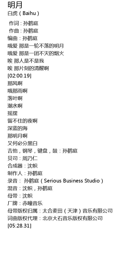 | [03:00.49] | 吉他,钢琴,键盘,鼓:孙鹤庭 |