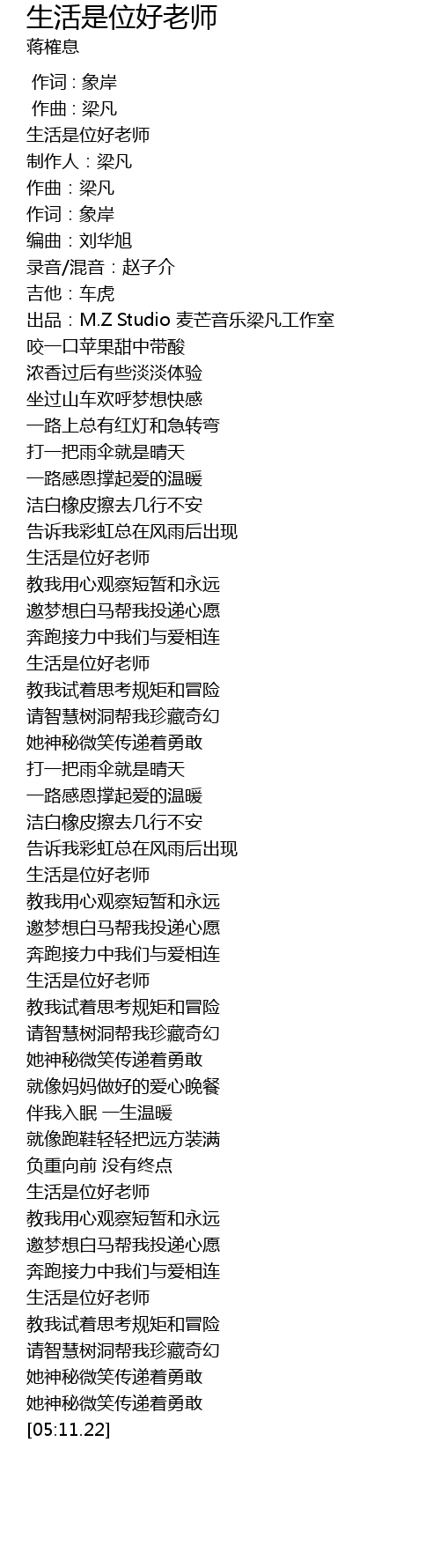 | [02:42.79] | shēng huó shì wèi hǎo lǎo shī |