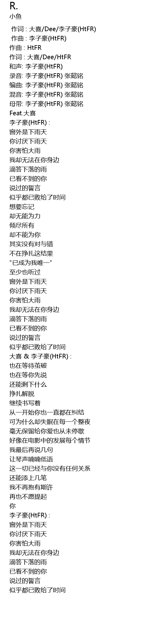 | [00:07.695] | 混音: 李子豪(HtFR) 张懿铭 |