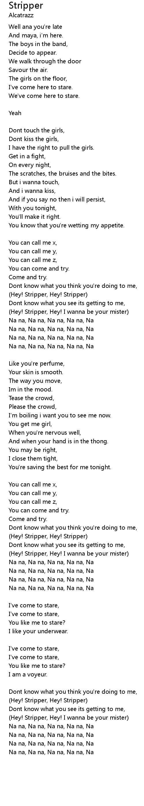 | (Hey! Stripper, Hey! I wanna be your mister) | |