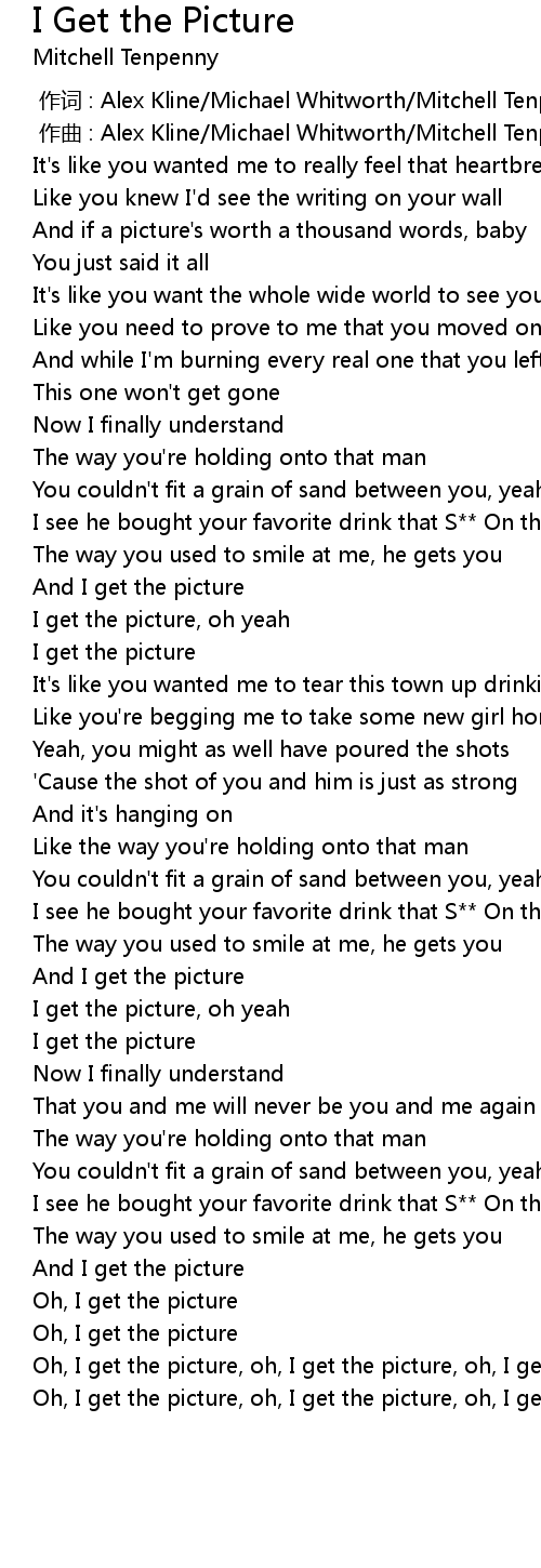 | [03:06.815] | Oh, I get the picture, oh, I get the picture, oh, I get the picture |