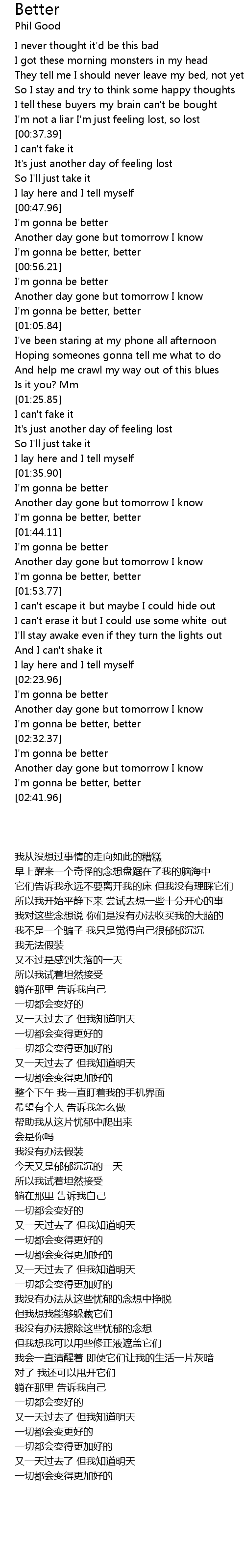 | [01:35.90] | I'm gonna be better |