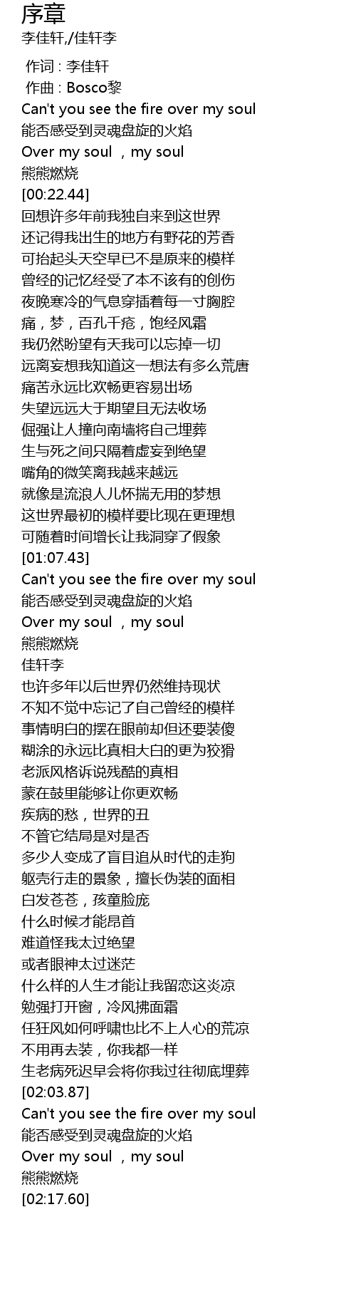 | [00:17.28] | 能否感受到灵魂盘旋的火焰 |