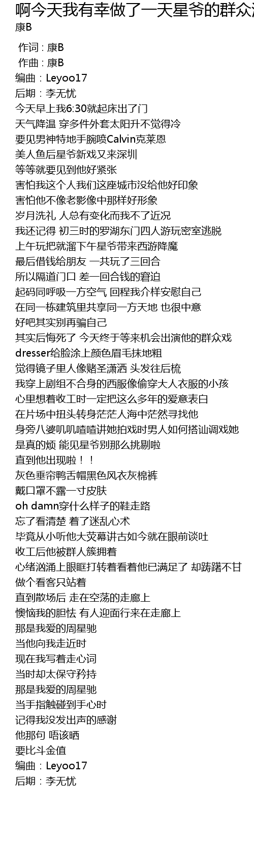| [00:53.296] | 其实后悔死了 今天终于等来机会出演他的群众戏 |