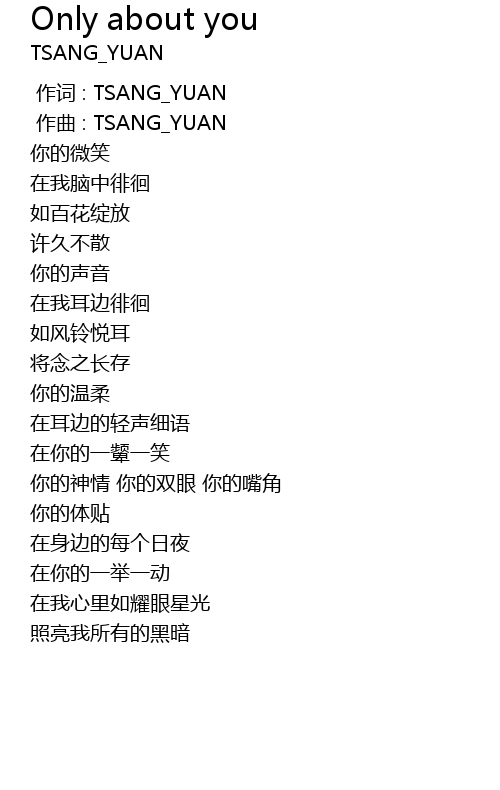 | [00:00.000] | 作词 : TSANG_YUAN |