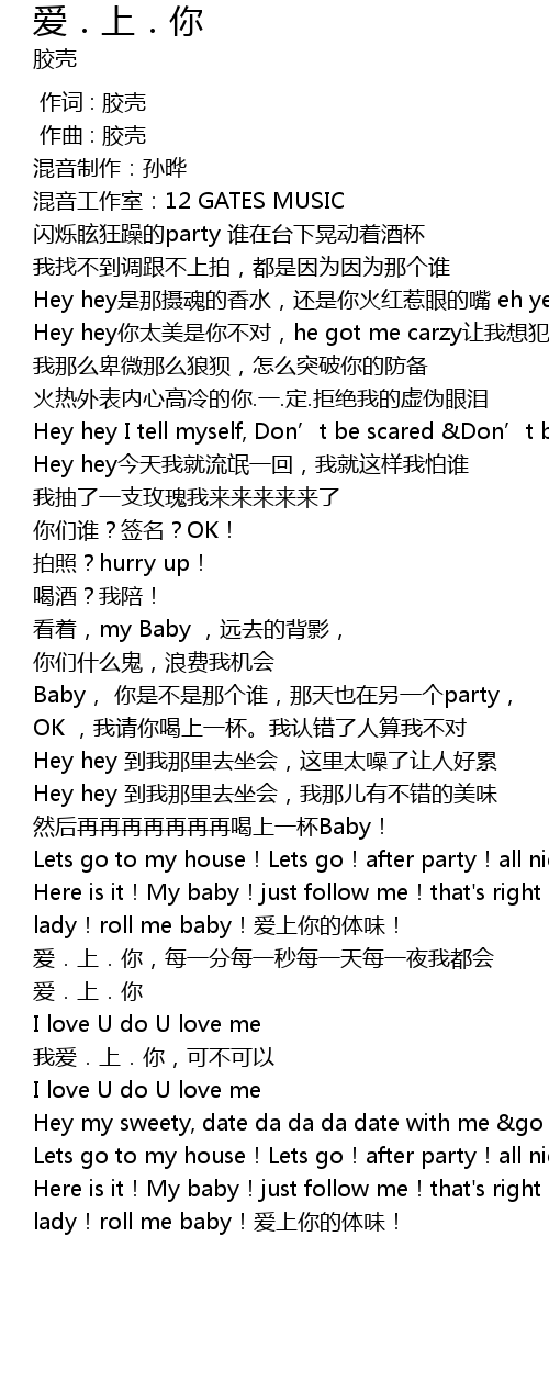 | [00:51.999] | Hey hey你太美是你不对,he got me carzy让我想犯罪 |