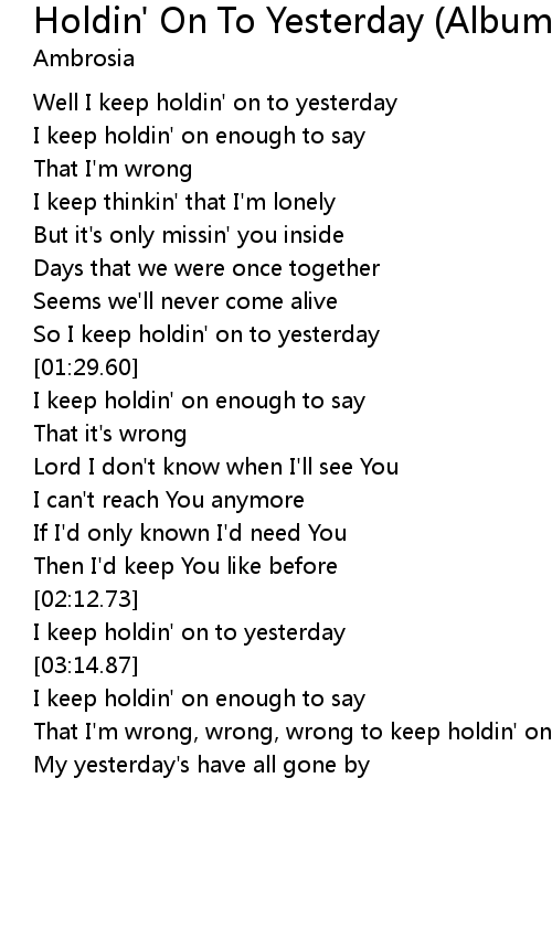 | [01:17.79] | So I keep holdin' on to yesterday |
