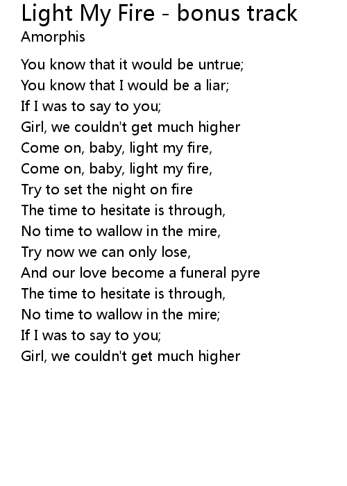 | Come on, baby, light my fire, | |