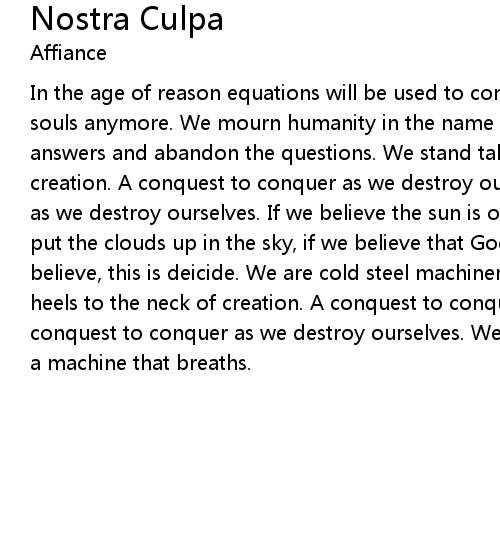 heels to the neck of creation. A conquest to conquer as we destroy ourselves. A |