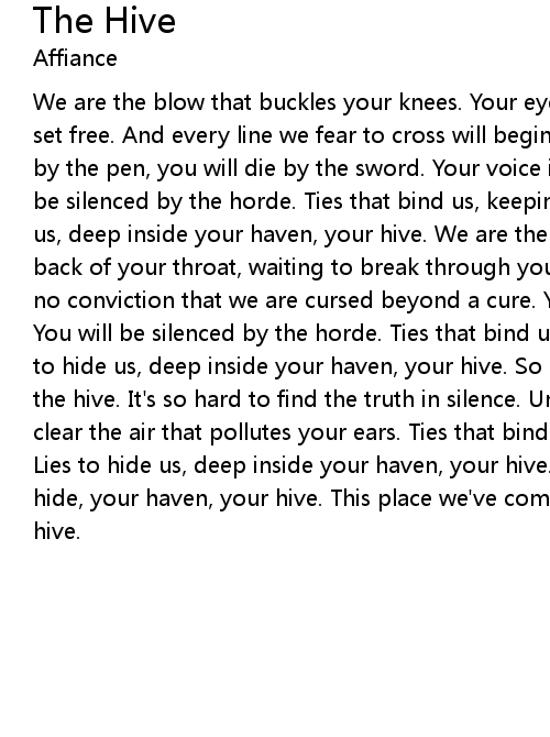 the hive. It's so hard to find the truth in silence. Untie your tongue and |
