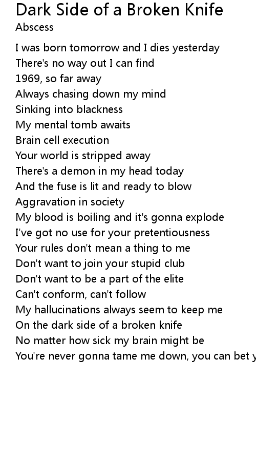 Dark Side of a Broken Knife Lyrics