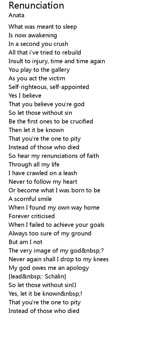 | So hear my renunciations of faith | |