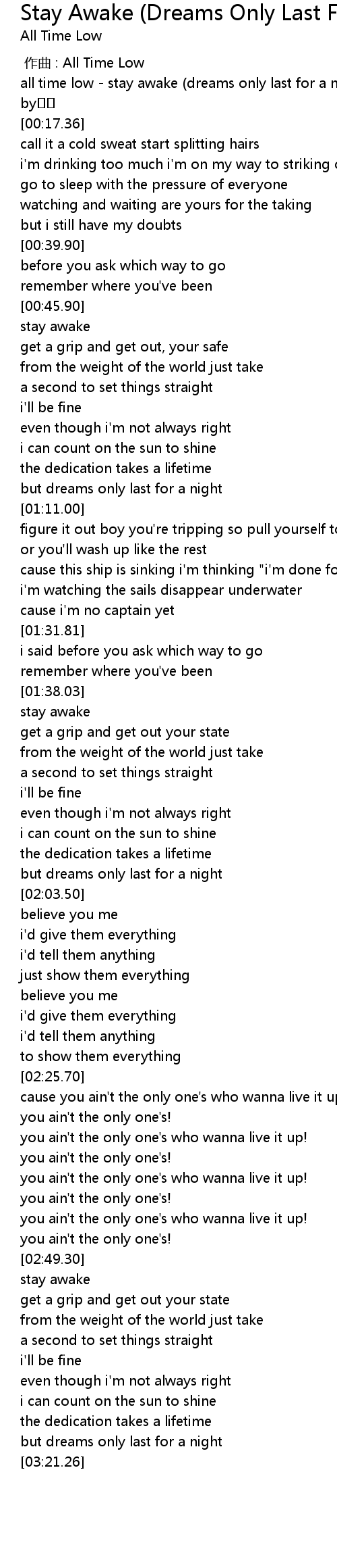 | [00:00.45] | all time low - stay awake (dreams only last for a night) |