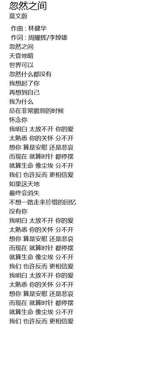 | [00:01.00] | 作词 : 周耀辉/李焯雄 |