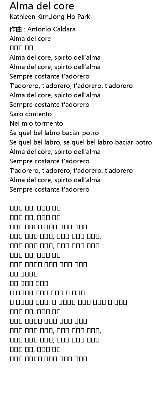 | Song | Alma del core |