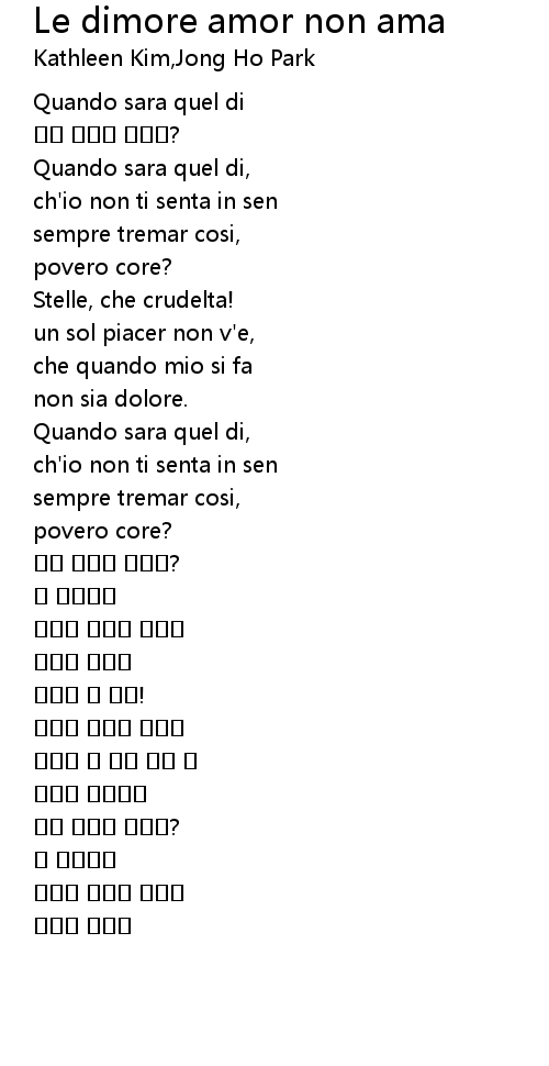 | Song | Le dimore amor non ama |