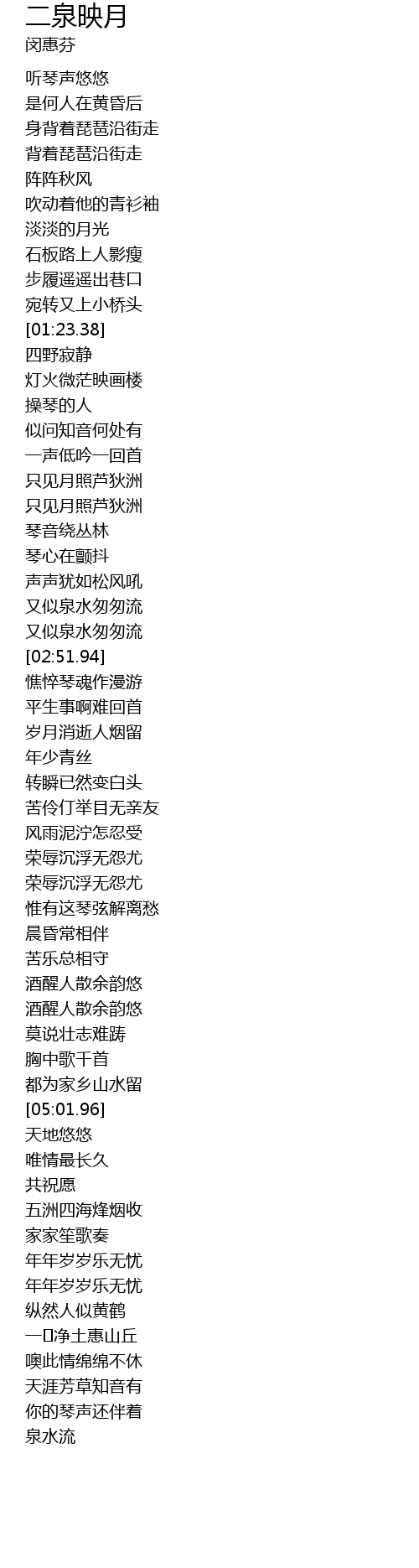 二泉映月 er quan ying yue Lyrics
