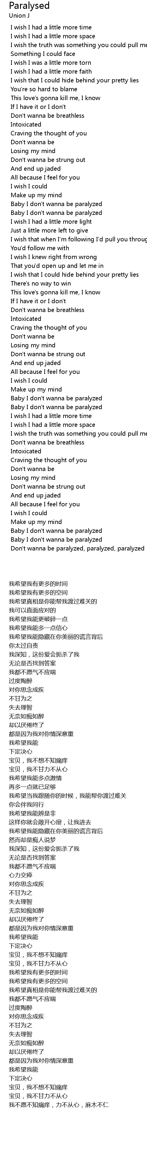 | [00:59.881] | Baby I don't wanna be paralyzed |