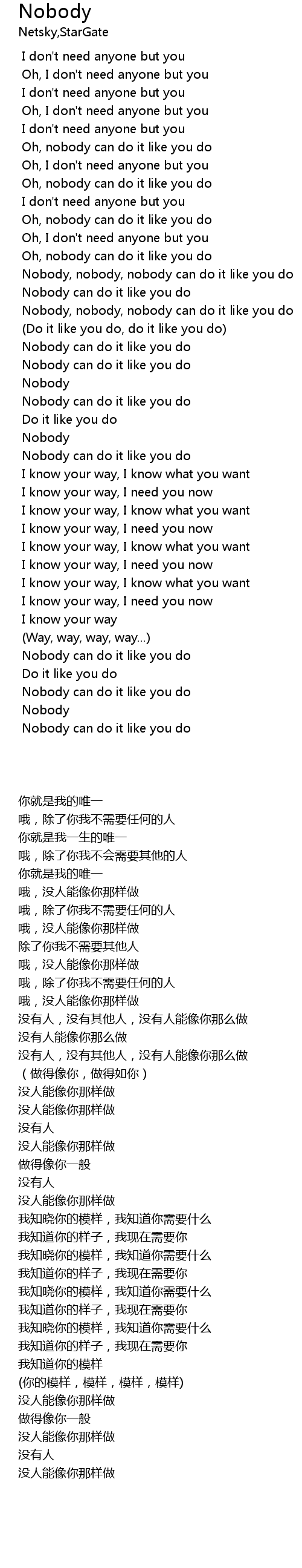 | [00:45.244] | I don't need anyone but you |