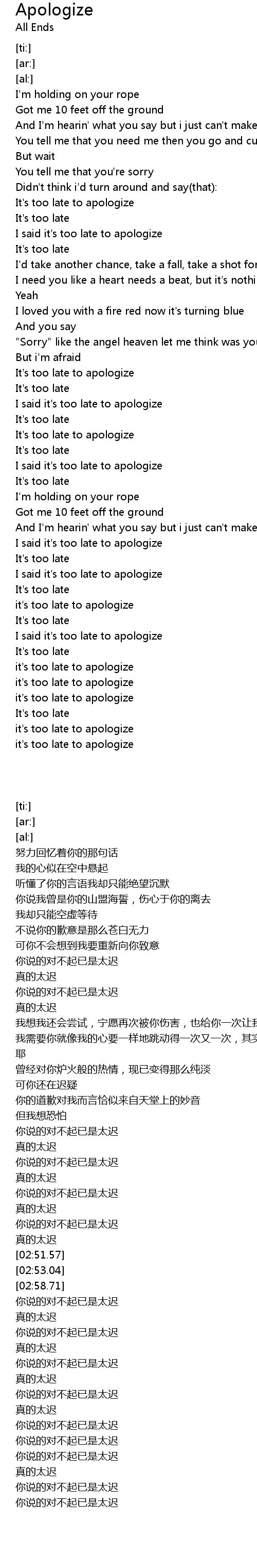 | [03:14.57] | I said it's too late to apologize |