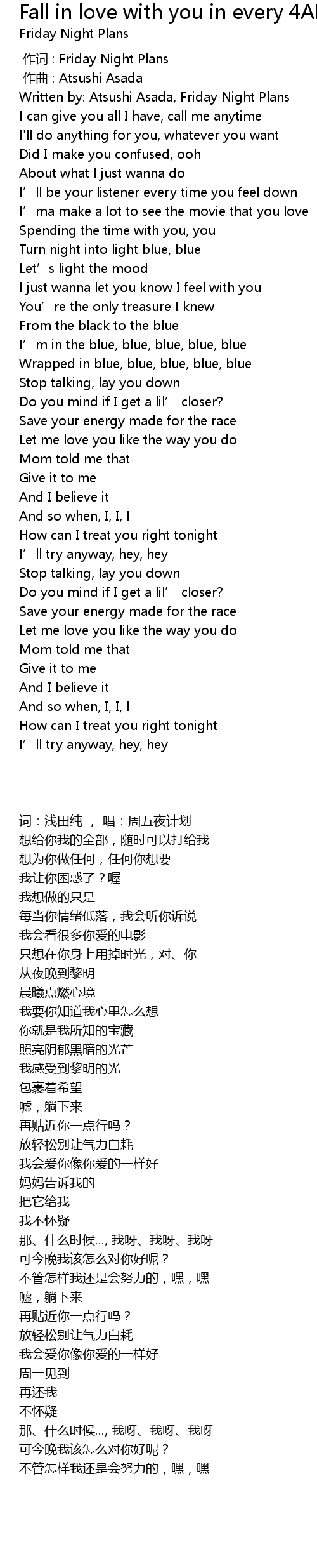 | [00:00.000] | zuò cí : Friday Night Plans |