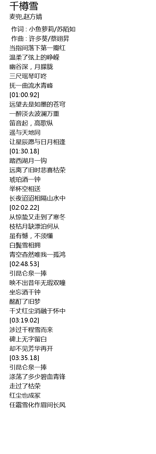 | [03:20.22] | shè guò qiān chéng xuě ér lái |