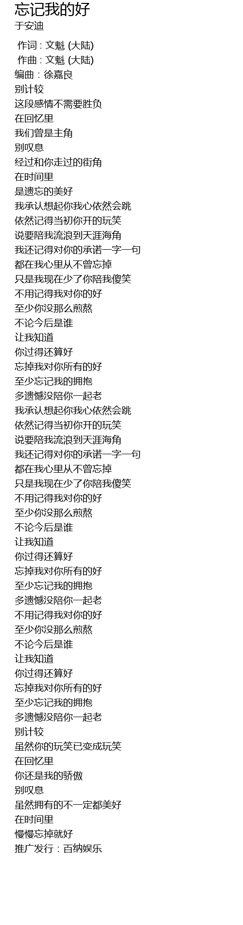| [01:45.028] | wàng diào wǒ duì nǐ suǒ yǒu de hǎo |
