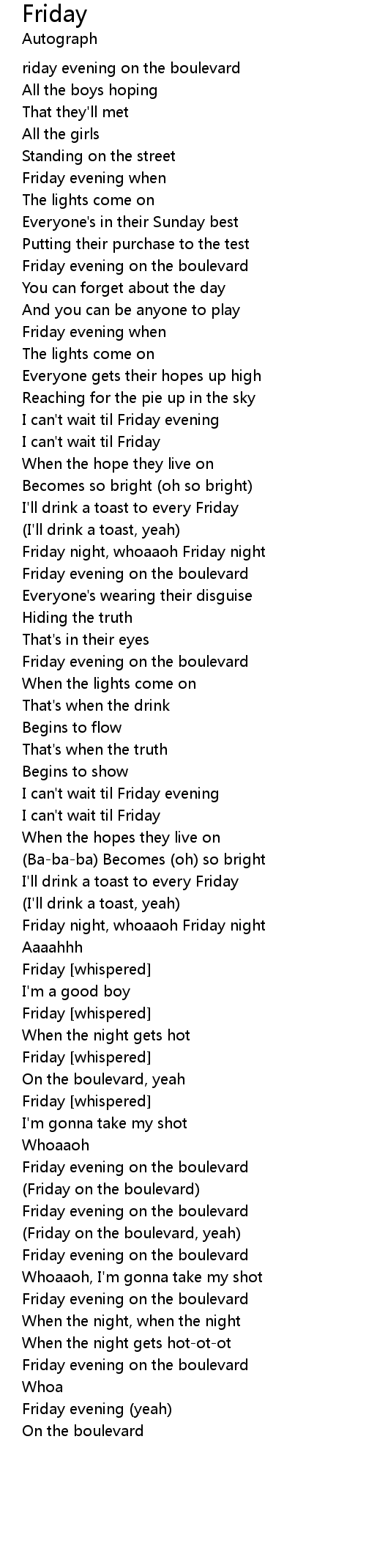 Friday night, whoaaoh Friday night |