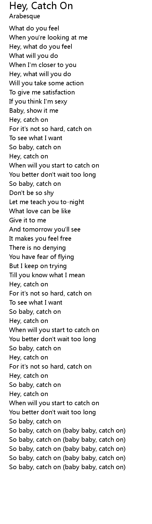 So baby, catch on |