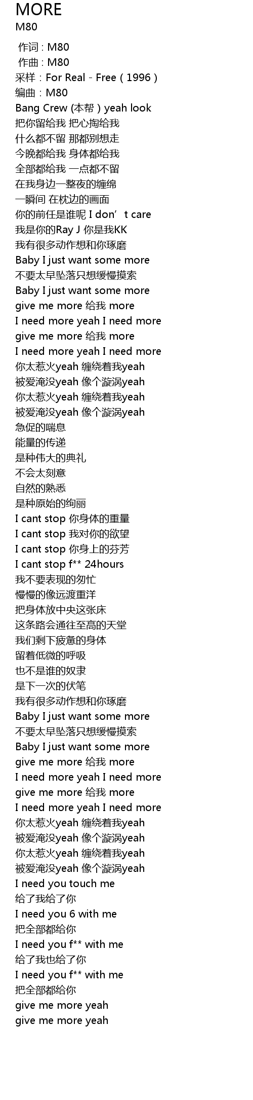 | [00:41.91] | 今晚都给我 身体都给我 |
