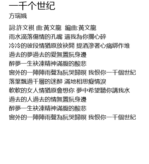 | 窗外的一陣陣雨聲為阮哭歸暝 我恨你一千個世紀 | |