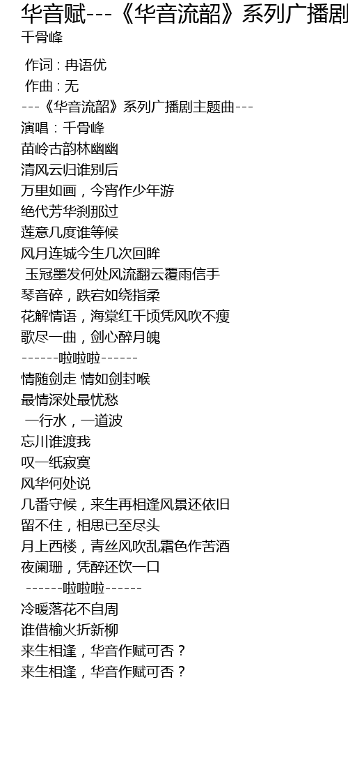 | [00:27.34] | ---《华音流韶》系列广播剧主题曲--- |