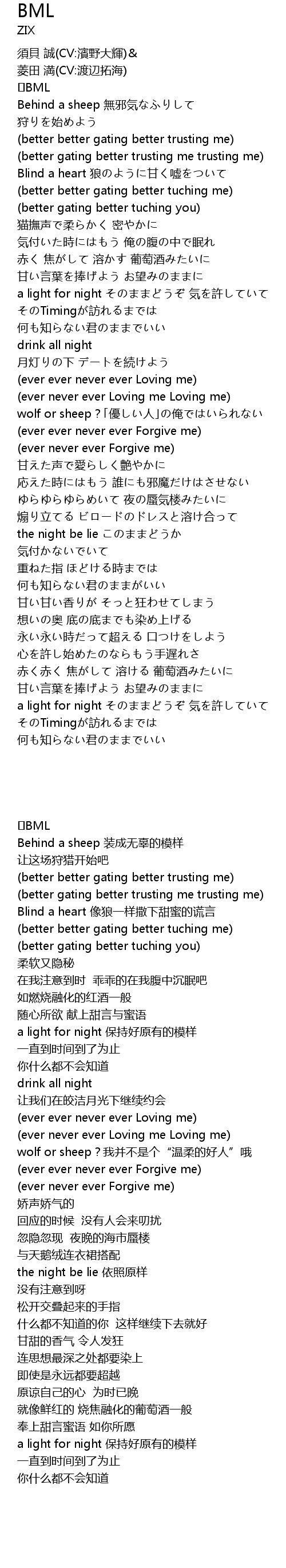 | [00:19.33] | Behind a sheep 無邪気なふりして |