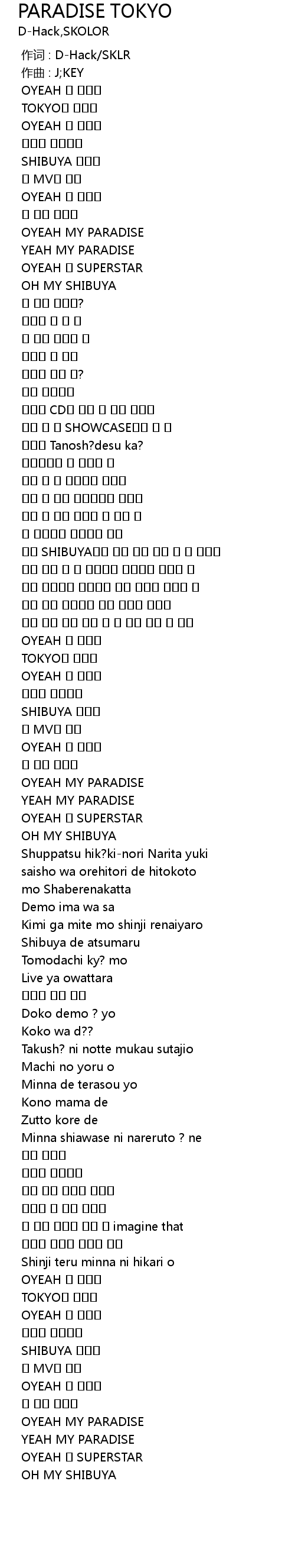 | [03:02.582] | OYEAH MY PARADISE |