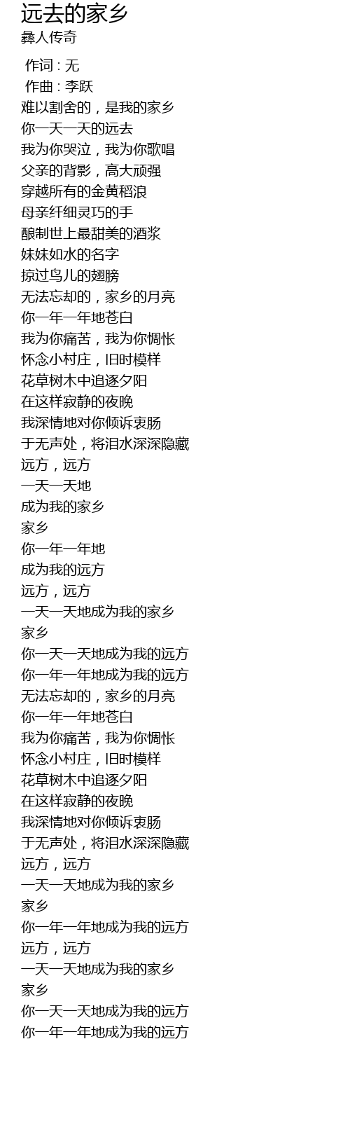 | [00:26.669] | 难以割舍的,是我的家乡 |