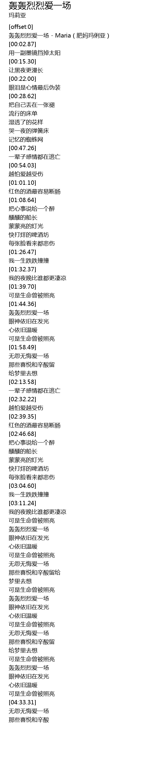 | [00:00.77] | 轰轰烈烈爱一场 - Maria(肥妈玛俐亚) |