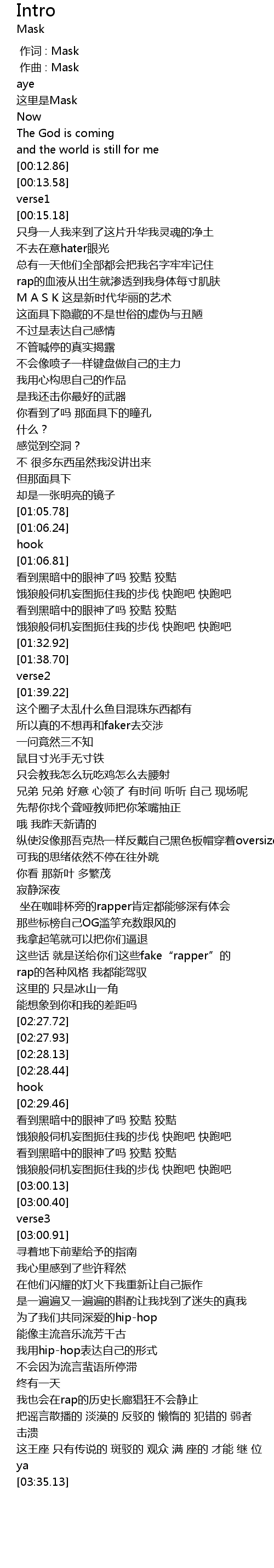 | [00:03.81] | 这里是Mask |