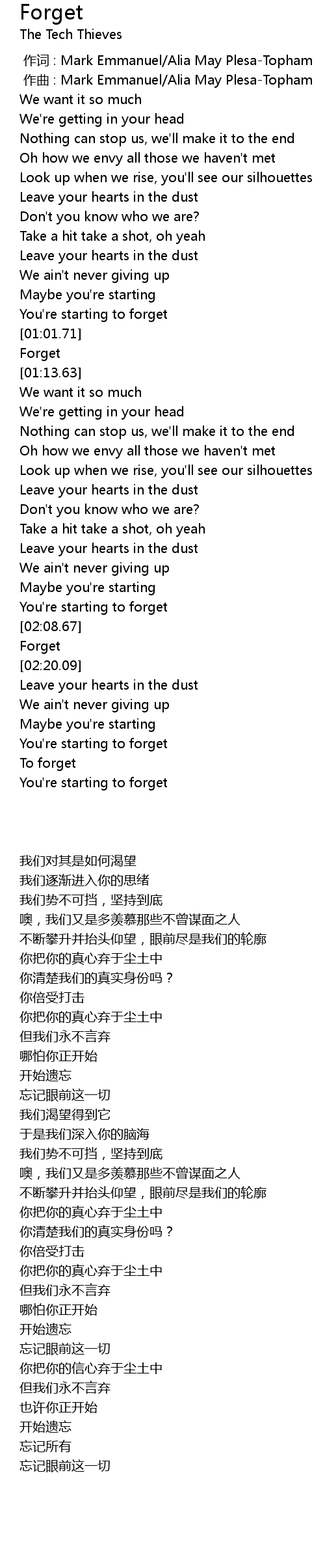 | [00:01.000] | zuo qu : Mark Emmanuel Alia May PlesaTopham |