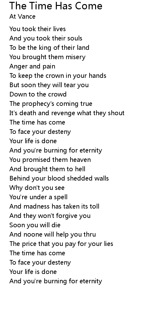 The time has come |