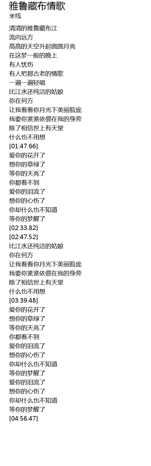 | [00:37.53] | 清清的雅鲁藏布江 |