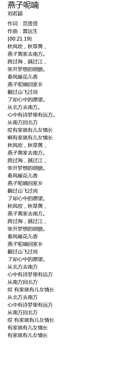 | [01:00.20] | yàn zi ní nán huí jiā xiāng |