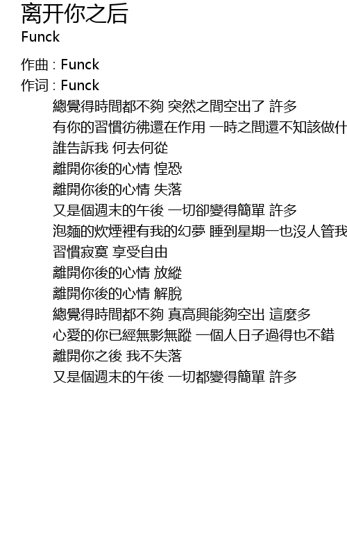 | 心愛的你已經無影無蹤 一個人日子過得也不錯 | |