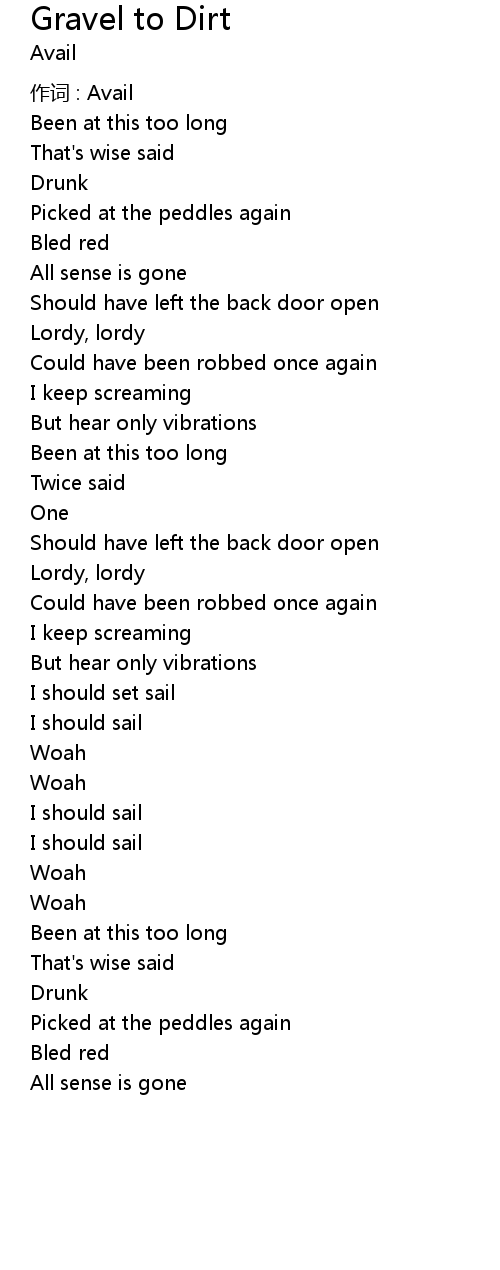 | Song | Gravel to Dirt |