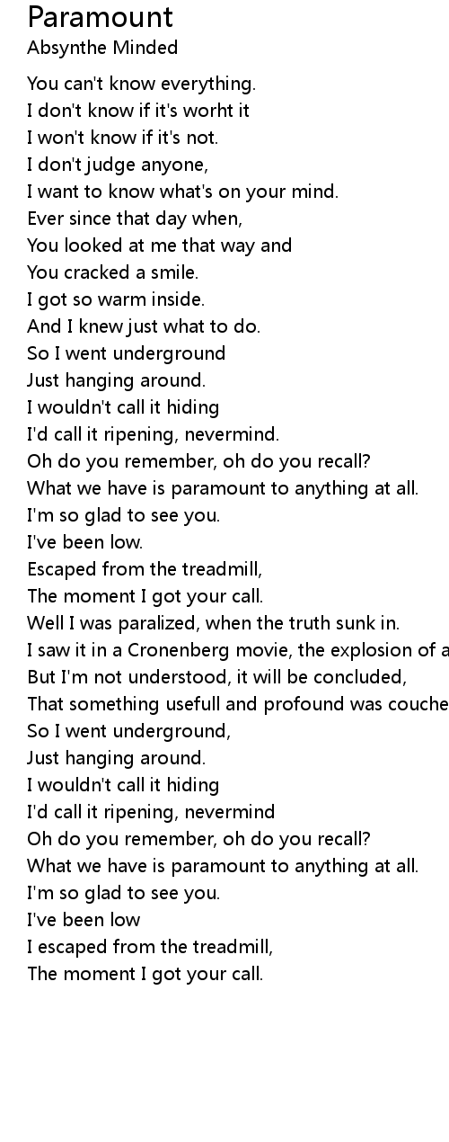 Well I was paralized, when the truth sunk in. |
