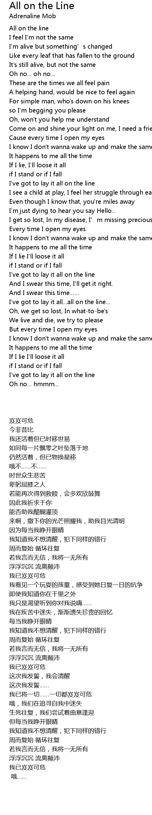 | [00:00.000] | All on the line |