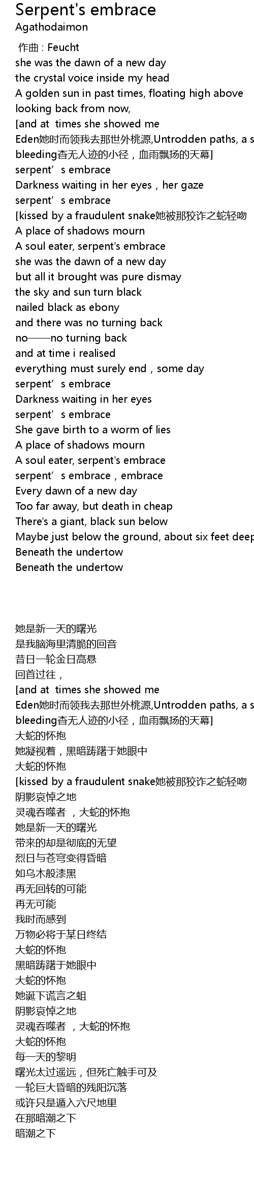 | [02:31.40] | A soul eater, serpent' s embrace |