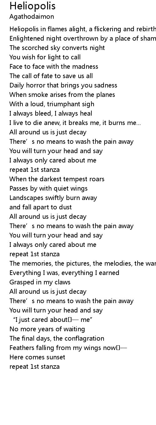| Heliopolis in flames alight, a flickering and rebirth | |